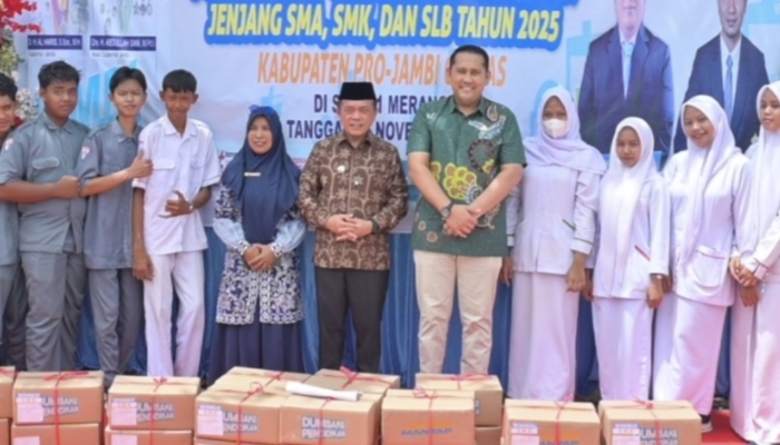 BANGKO – Bupati Merangin, M. Syukur mendampingi Gubernur Jambi Al Haris menyerahkan bantuan program Dumisake (Dua Miliar Satu Kecamatan) Pendidikan dan Bedah Rumah Tahun 2025, Kamis (06/11) di SMAN 1 Merangin.
