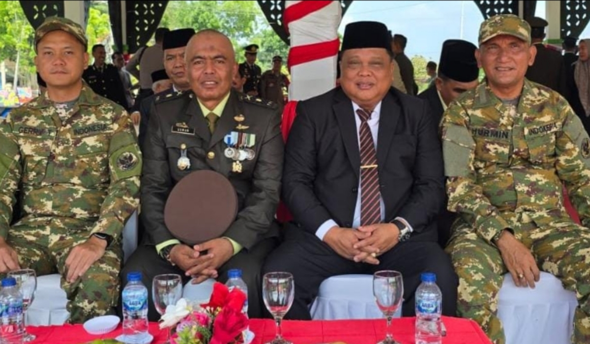 Bangko - Bupati Merangin H M Syukur diwakili Pj Sekda Zuhifmi, mengikuti jalannya upacara peringatan Hari Ulang Tahun (HUT) ke-80 Tentara Nasional Indonesia (TNI), di Lapangan Gunung Kembang, Komplek Perkantoran Bupati Sarolangun, Minggu (05/10).