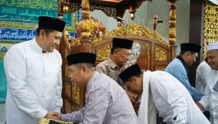 Ketiganya tampak berbaur bersama para Kepala Organisasi Perangkat Daerah (OPD), tokoh agama, tokoh adat, serta ribuan masyarakat yang memadati area masjid sejak pagi hari.