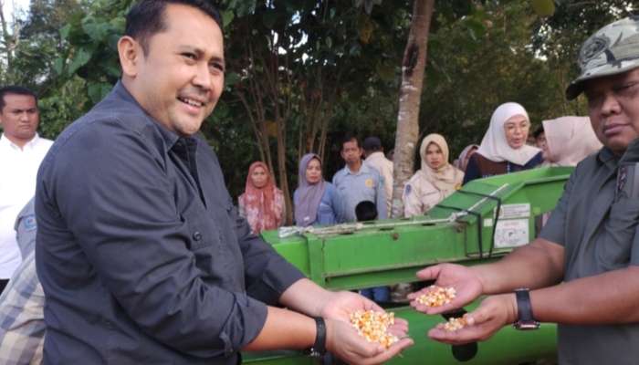 Semangat ini terpancar saat beliau memimpin langsung panen jagung di Balai Benih Utama (BBU) Sungai Manau, Sabtu (18/04).